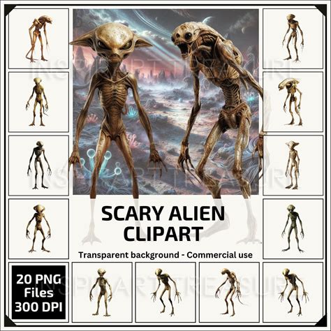 Realistic Scary Alien Clipart Spooky Alien PNG Extraterrestrial Images For DIY Crafts Space Digital Art For Extraterrestrial Life Lovers