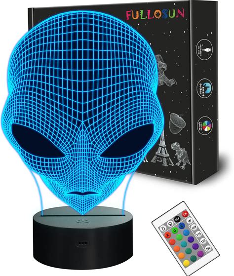 Powertrc 3D LED Night Light Optical Illusion Alien Head | 7 Colors USB Powered Birthday & Party Gift