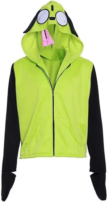 Anime Invader Cosplay Costume Coat Alien Zim Hoodies Jacket Hooded Zip Up Pullovers Sweatshirts With Ears Pattern Halloween