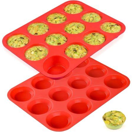 Disen 2 Pack Silicone Muffin Pan / Cupcake Pan Cupcake Mold 12 Cup, Red