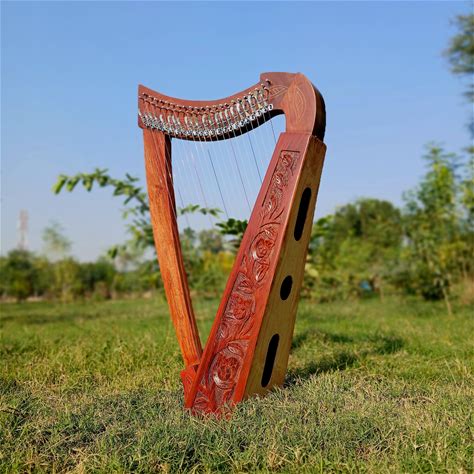 Rosewood 22 Strings Lyre Harp Irish Lever Lyre Harp Carved Frame Lyre Harp 22 Nylon Strings Harp With Free Tuning Key Bag & Extra Strings