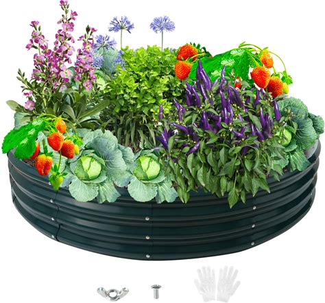 Zbzbml Durable Round Steel Raised Garden Bed Painted For Planting Vegetable/Herbs/Flowers/Trees At Backyard/Garden,Or Baby Chicken,Christmas Tree