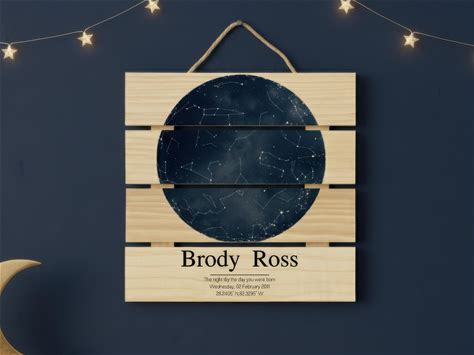 The Night Sky Constellation Map Chart Wood Print With Custom Date & Names