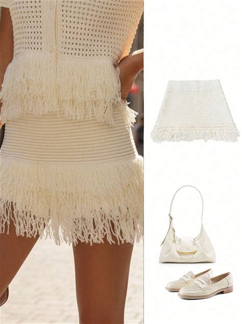 Women's Fashion Fringe Decor Plaid Casual Knitted Mini Skirt, Spring/Summer,L
