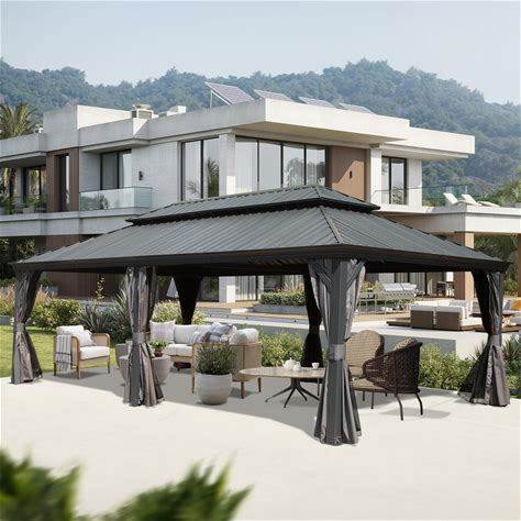 12' x 16' Patio Hardtop Gazebo Heavy Duty Aluminum Frame Meta