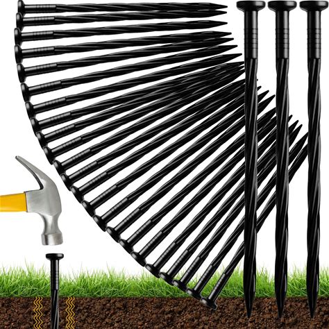 Honoson 100 Pack 8 Inch Landscaping Spikes Anchoring Spike Plastic Ground Stake For Lawn, Weed Barriers, Turf, House Construction, Paver Edging