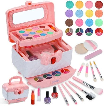 Omnliy Elegant Pink Design Washable Princess Makeup Kit For Girls Complete Washable Makeup Kit In A Case Ideal Princess-Themed Birthday Gift Toy For Girls Play And Gift - Giving,
