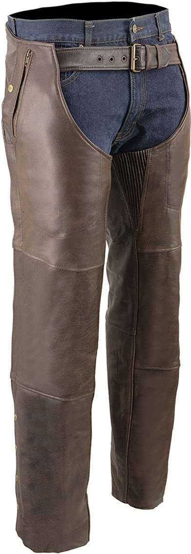 Milwaukee Leather ML1191RT Men's Retro Brown 4-Pocket Thermal Lined Premium Motorcycle Leather Chaps