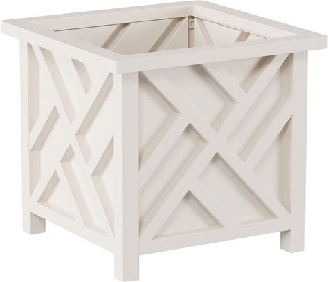 Lattice Design Planter Box - 14.75-Inch-Square Decorative Outdoor Flower Or Plant Pot By Pure Garden - 14.75 X 14.75 X 13 - White