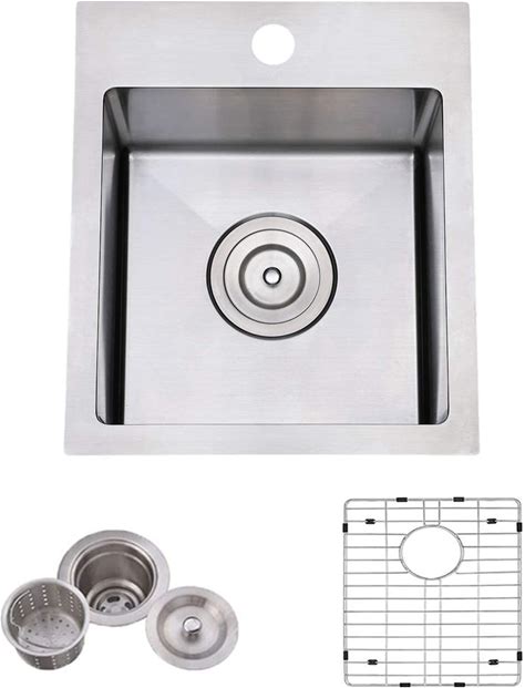 VAPSINT 13X15 Inch Drop In Bar Sink, 13 Inch Top Mount Stainless Steel Small Bar Sink, 16 Guage Handmade Single Bowl For Kitchen Wet Prep Outdoor RV