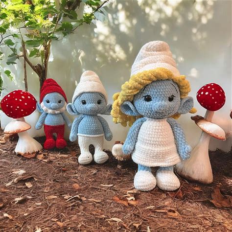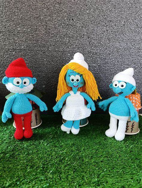 Handmade Amigurumi Smurfs Crochet Dolls - Papa Smurf, Smurfette, Gargamel, Azrael & More