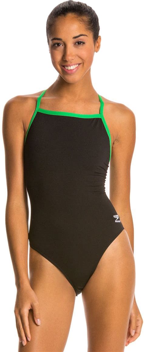 Speedo Women's Solid Endurance+ Flyback Training One Piece Swimsuit - Black/Bright Green - 40