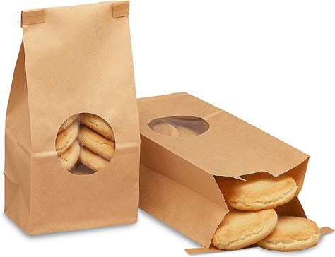 Cookie Bags - Kraft Bakery Bags - Window Front, 3 3/8X2 1/2X7 3/4", Kraft - ULINE - Carton Of 250