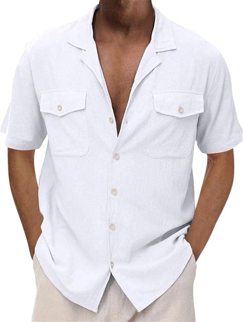 Men's Cotton Linen Cuban Guayabera Shirts Short Sleeve Button Down Hippie Tops Lapel Collar Casual Summer Beach Shirt