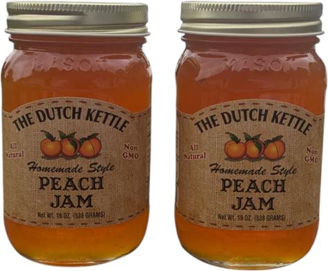 The Dutch Kettle Amish Homemade Peach Jam - 2 Pack (18 Oz Jars) - Crafted From The Finest Ingredients, Non-GMO, Preservative-Free - Traditional Recipe