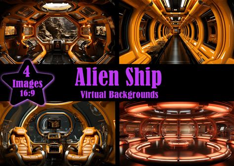 Alien Ship Interior Orange 4 Pack Zoom Background Virtual Meeting Backdrops Background MS Teams Facebook Google Meet Skype Virtual Scene