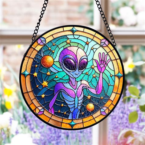 Alien Stained Glass Suncatcher, Handmade Space Alien Window H