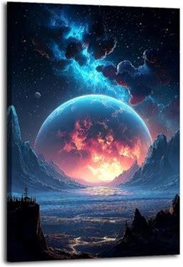 Alien Planet Landscape Wall Art Print - Fantasy Galaxy Lake - Neo