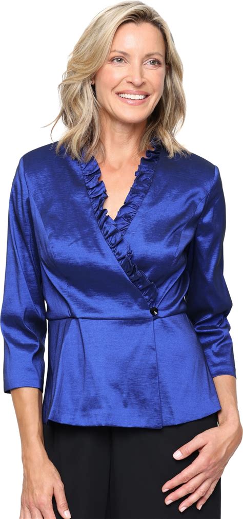 Alex Evenings Women's Taffeta Blouse - Royal - Size L