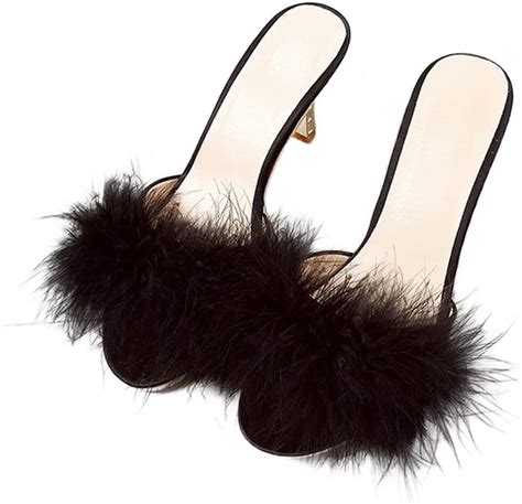 COVOYYAR Women's Feather Thin High Heels Peep Toe Fur Slippers Mules Lady Pumps Slides