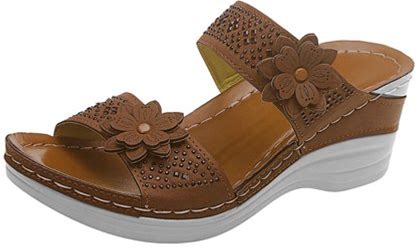 Summer Retro Casual Flowers High-Heeled Flat-Bottomed Ladies Wedge Slippers