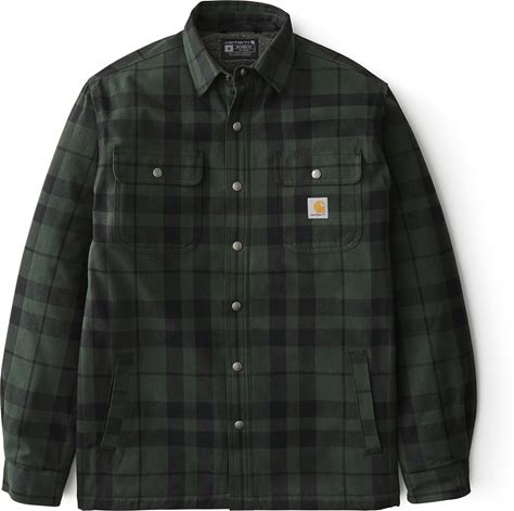 Carhartt Mens 107017 Relaxed Fit Flannel Sherpa-Lined Shirt Jac - Forestry Green Large Regular