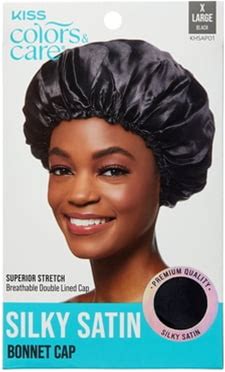 Kiss Colors & Care Silky Satin Bonnet Cap, Slip-Free Elastic Band, XL, Black, 1 Piece