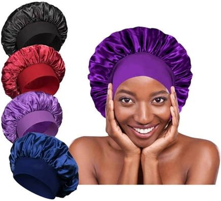4 Pack Satin Bonnet Hair Bonnet For Sleeping-Large Silk Bonnets For Black Women With Elastic Soft Band For Hair Care