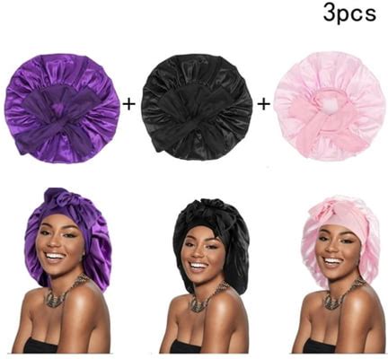 Vongem 3 Pack Satin Sleeping Bonnet, Silk Bonnet For Sleeping Women,Large Satin Sleep Bonnet With Long Strap, Adjustable Sleep Cap Hair Bonnet For Wom