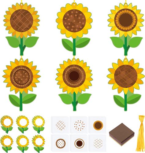Motipuns 24 Sets Sunflower Flower Crafts Set Suncatcher Tissue Paper Crafts Kit DIY Party Decor Make Your Own Flower Hanging Ornaments For Home Fun
