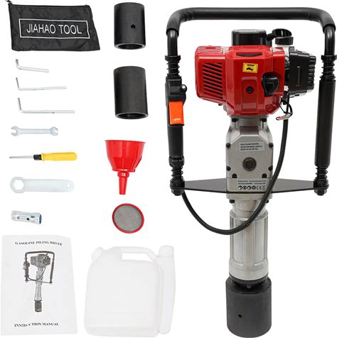 52Cc Gas Powered T Post Driver, 2 Stroke 1900W Gas Powered Pile Driver Fence Post Driver, Air Cooling Single Cylinder Gasoline Garden Fencing Tool Machine With 2 Post Driving Head