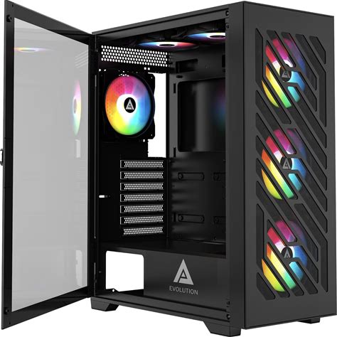 Apevia EVOLUTION-BK Evolution Mid Tower Gaming PC Case W/ 6X 120mm PWM ARGB Fans, 366 RGB Light Modes, 1X Metal Plate Mesh Front Panel, 1X Door Swivel