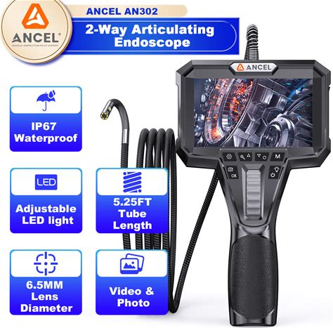 Ancel Two-Way 210°Articulating Borescope 6.5mm Industrial Endoscope Camera 1080P. ANCEL. Borescopes & Fiberscopes. ANCELAN302.