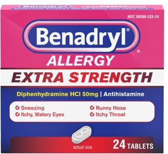 Benadryl Extra Strength Antihistamine Allergy Relief Tablets, 24 Count