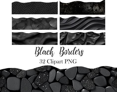 Black Border Clipart, Black Texture Borders PNG, Scrapbook, Digital Download