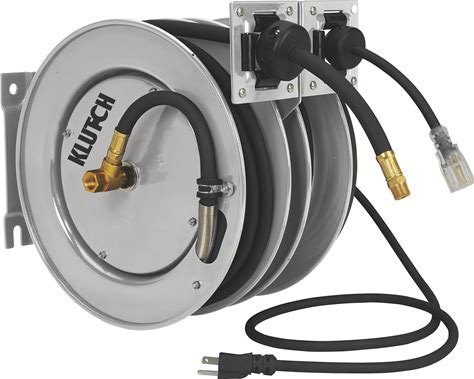 Klutch Combo Air And Electric Hose Reel, 3/8in. X 25Ft., Steel