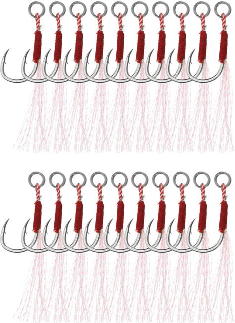 PATIKIL Fishing Assist Hooks Kit, 20 Pcs Glow Jigging Hook Slow Fast Fall Jigs Fishing Hooks For Vertical Jigging Lures, Green (16,2"X0.6")