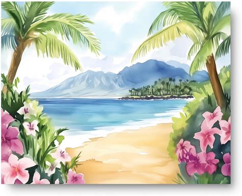 Maui Watercolor Print, Hawaii Coastal Wall Art, Tropical Island Poster, Hawaiian Travel Decor, Ocean Landscape Artwork, Seaside Inspired Art