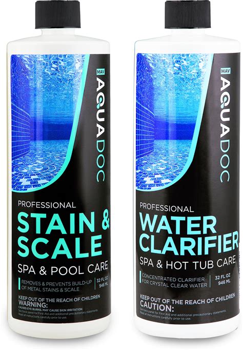 Aquadoc Spa Clarifier And Hot Tub Stain And Scale Control Bundle - Includes 32Oz Hot Tub Clarifier And 32Oz Spa Stain And Scale Remover - Made In USA