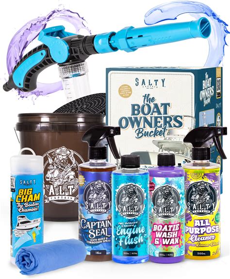Salty Captain Boat Wash Kit - All-In-One Boat Cleaning Starter Box With Premium Marine-Grade Products & Bucket - Includes Boat Wash N Wax, Hose Foam