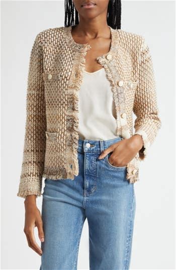 Veronica Beard Sariyah Cotton Blend Knit Jacket In Desert Khaki Multi At Nordstrom, Size Medium