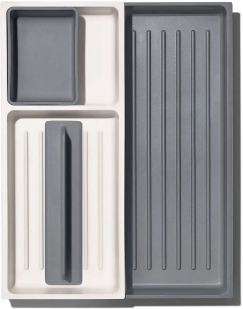 OXO Long Handled Tool Organizer: Utensil & Kitchen Drawer Storage, White/Gray, Hand Wash, TPE & Polypropylene Material