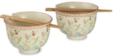 Ella Ramen Bowls Set With Chopsticks |Red | Service For 2