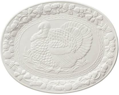 I Kito Oval Turkey Platter Ceramic Tray, 17" White Thanksgiving Turkey Dishes Serving Plates Oval