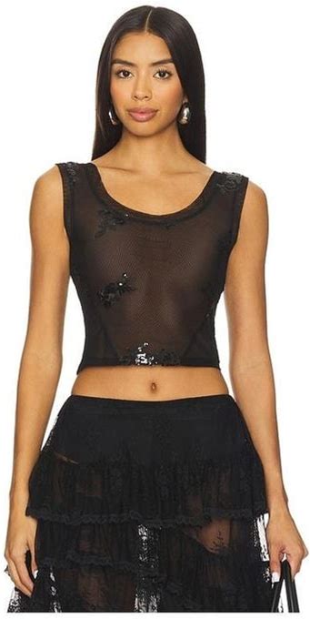 YUHAN WANG Women's Floral Sequin Mesh Top - Black - Sleeveless Tops