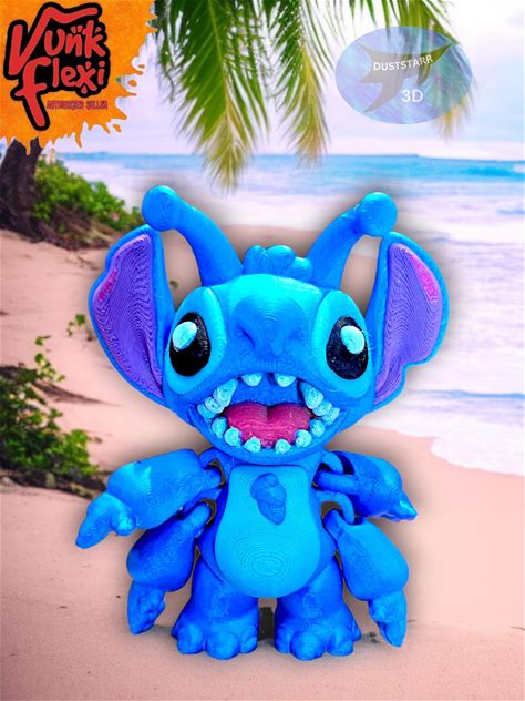 3D Printed Alien Stitch Figure, Stitch Fidget Toy, Flexi Alien Stitch, 3D Printed Lilo And Stitch Character, Vunk Flexi, Made To Order!