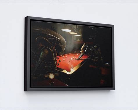 Alien Vs Predator Playing Pool Canvas Print: Man Cave Wall Art