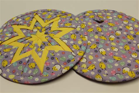 Easter Chicks & Eggs Folded Star Quilted Hot Pad, Table Topper, Pot Holder, Amish Star