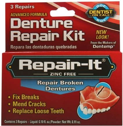 Dentemp Repair-It Advanced Formula Denture Repair Kit With Repairs Broken Dentures, Mend Cracks & Replace Loose Teeth, Pack Of 3