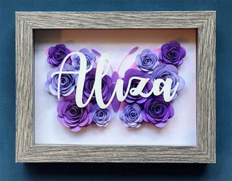 Personalized Butterfly Paper Flower Shadow Box: Custom Name Gift
